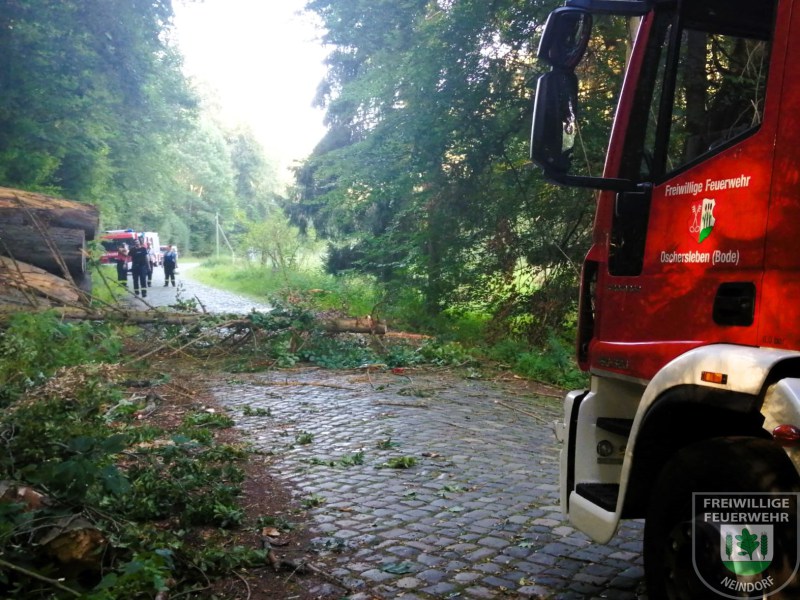 Die Feuerwehren Neindorf und Beckendorf wurden am Samstag gegen 17.30 Uhr zu einen Hilfeleistungseinsatz auf die Verbindungsstraße zwischen Neindorf und Hubertushöhe alarmiert. Ein Baum drohte auf die Straße zu stürzen.